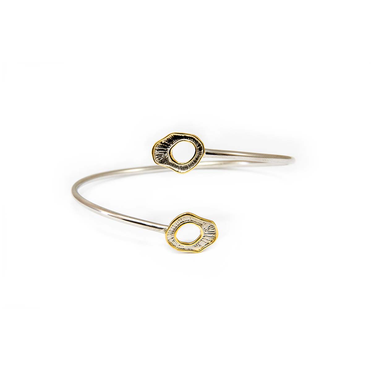 Χειροποίητο βραχιόλι βέργα απο ασήμι 925° με επίχρυσες λεπτομέρειες. Ασημένιο χάδι, φτιαγμένο να αγκαλιάζει τη διαφορετικότητα της κάθε στιγμής.