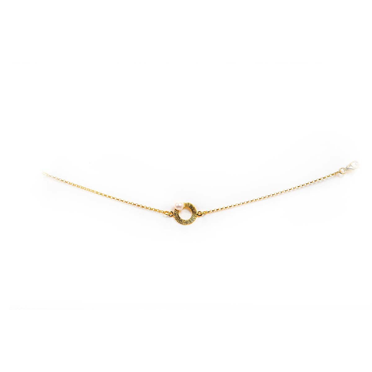 Χειροποίητο βραχιόλι απο επιχρυσωμένο ασήμι 925° με πέρλα.Ένας φωτεινός κύκλος που ατανακλά τη λάμψη της πέρλας. Το μήκος του είναι 16 εκ. με 4 εκ. προέκταση