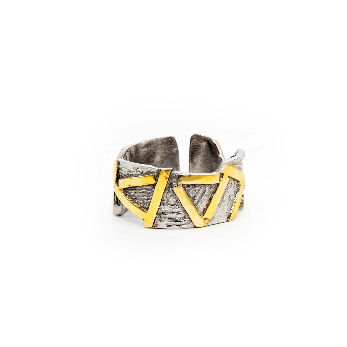 Χειροποίητο δαχτυλίδι απο ασήμι 925° με επίχρυσες λεπτομέρειες. Ασύμμετρο δαχτυλίδι με καθαρές γραμμές και αρχιτεκτονική κομψότητα. Το μέγεθος του αυξομειώνεται απο Νο 49 εώς και Νο 59