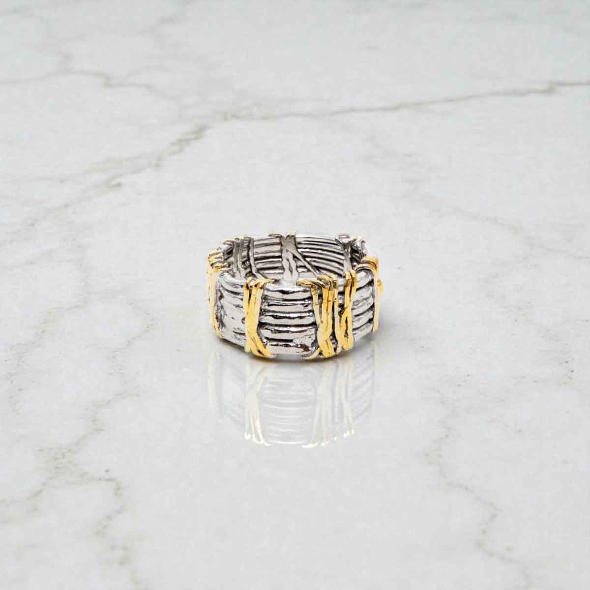 Χειροποίητο δαχτυλίδι απο ασήμι 925° με επίχρυσες λεπτομέρειες. Όταν οι γραμμές γίνονται τέχνη· ισορροπία μέσα από απλότητα και καθαρότητα. Το μέγεθός του αυξομειώνεται απο Νο 48 εώς και Νο 59