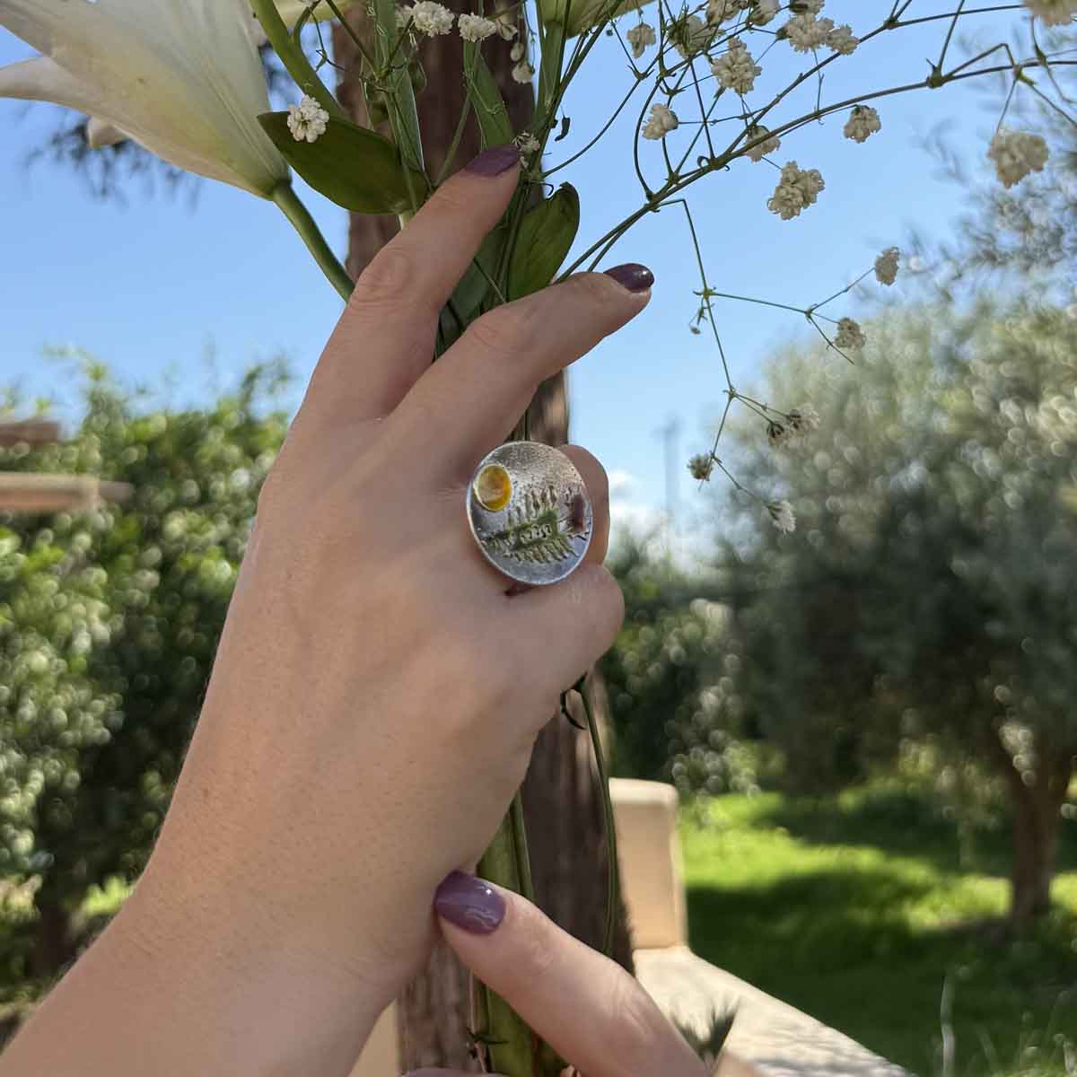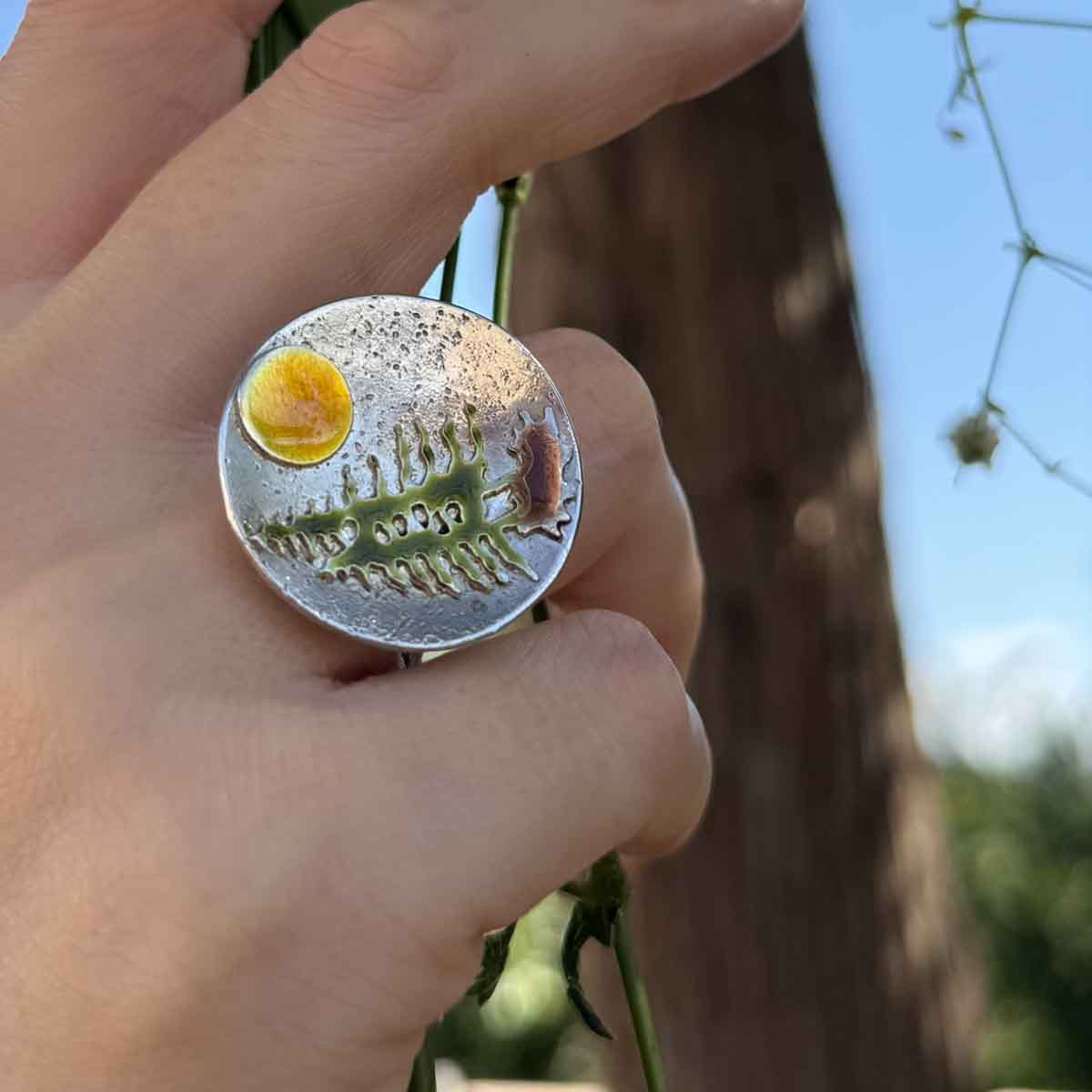 Χειροποίητο δαχτυλίδι απο ασήμι 925° με χρώμα. Ένα κόσμημα εμπνευσμένο απο τις απλές γραμμές της φύσης. Το μέγεθός του αυξομειώνεται και ταιριάζει σε όλα τα δάχτυλα