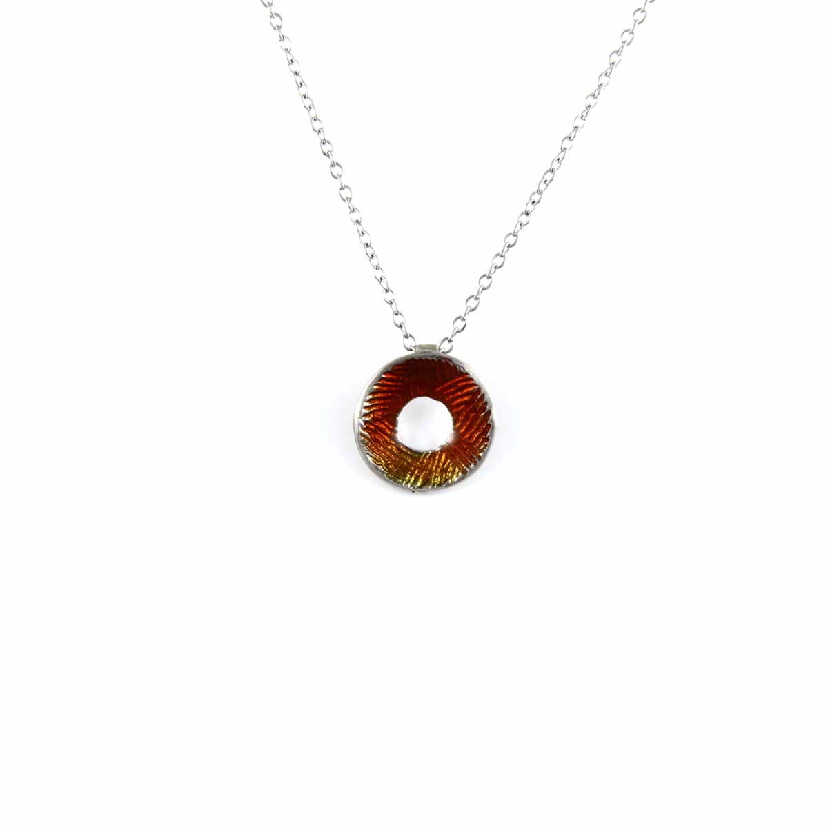 Χειροποίητο μενταγιόν απο ασήμι 925° με κόκκινο, πορτοκαλί και κίτρινο σμάλτο σε αλυσίδα 925° μήκους 40 εκ. με 5 εκ. προέκταση. Minimal κύκλος με διακριτική κόκκινη λάμψη