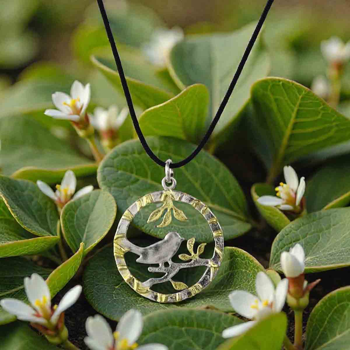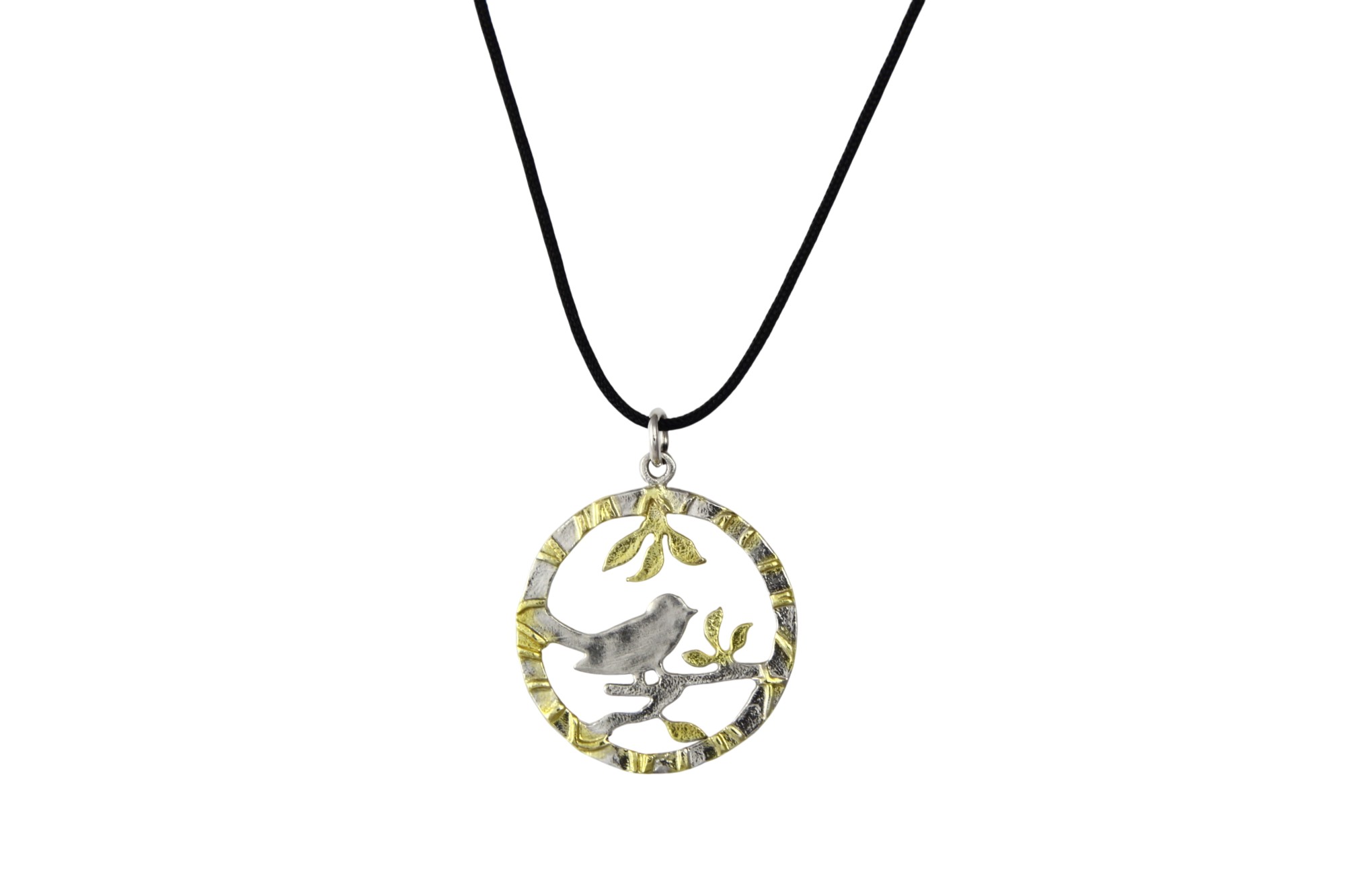 Χειροποίητο μενταγιόν απο ασήμι 925° με επίχρυσες λεπτομέρειες σε κορδόνι . Ρομαντικό κόσμημα για αυτούς που αγαπούν τη φύση. Ιδανικό για δώρο.Το μήκος του αυξομειώνεται (50-70 εκ)