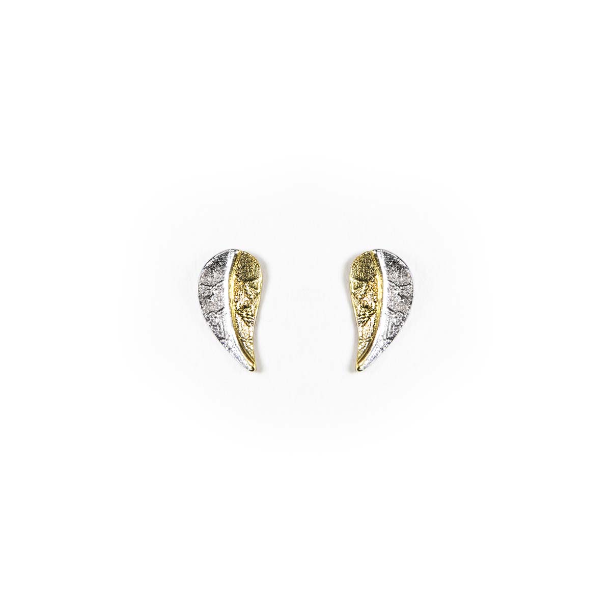 Χειροποίητα σκουλαρίκια απο ασήμι 925° με επίχρυσες λεπτομέρειες. Φύλλα με μαλακή καμπύλη, ισορροπημένο και διαχρονικό σχήμα για όλες τις ώρες της ημέρας