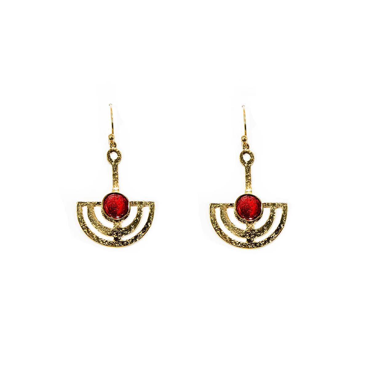 Χειροποίητα σκουλαρίκια απο ασήμι 925°,επιχρυσωμένο με κόκκινο χρώμα.Ένα κόσμημα εμπνευσμένο απο τη δύναμη της φωτιάς και του μετάλλου