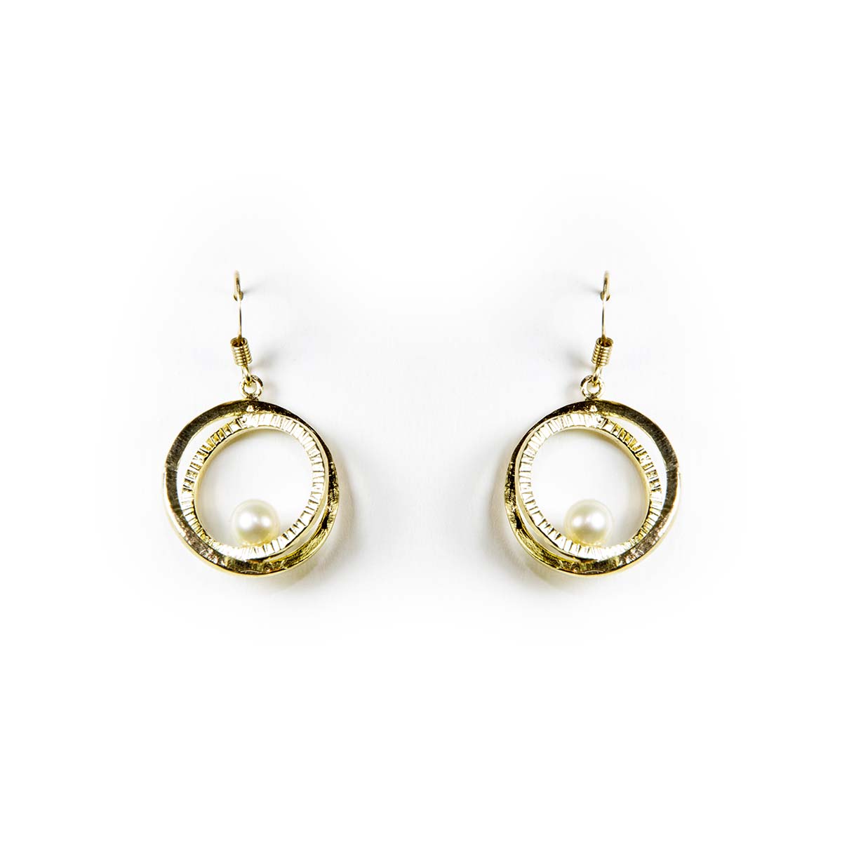Χειροποίητα σκουλαρίκια απο ασήμι 925° με επίχρυσες λεπτομέρειες.Ένα εντυπωσιακό κόσμημα με κύκλους σε αρμονία που αγκαλιάζουν την λάμψη της πέρλας